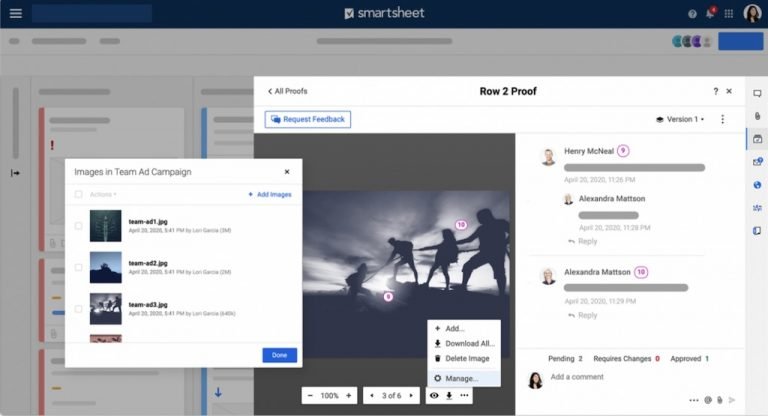 Proofing empowers any stakeholder to easily review and approve your team’s content. Upload your file to a proof and send a review request to colleagues, vendors, clients, and more, even if they’re not shared to your sheet. Reviewers can pin comments, discuss their feedback with each other, and log their approval decisions. Upload a new version to the proof at any time to continue the process. Previous versions of the proof will remain available in view-only mode.